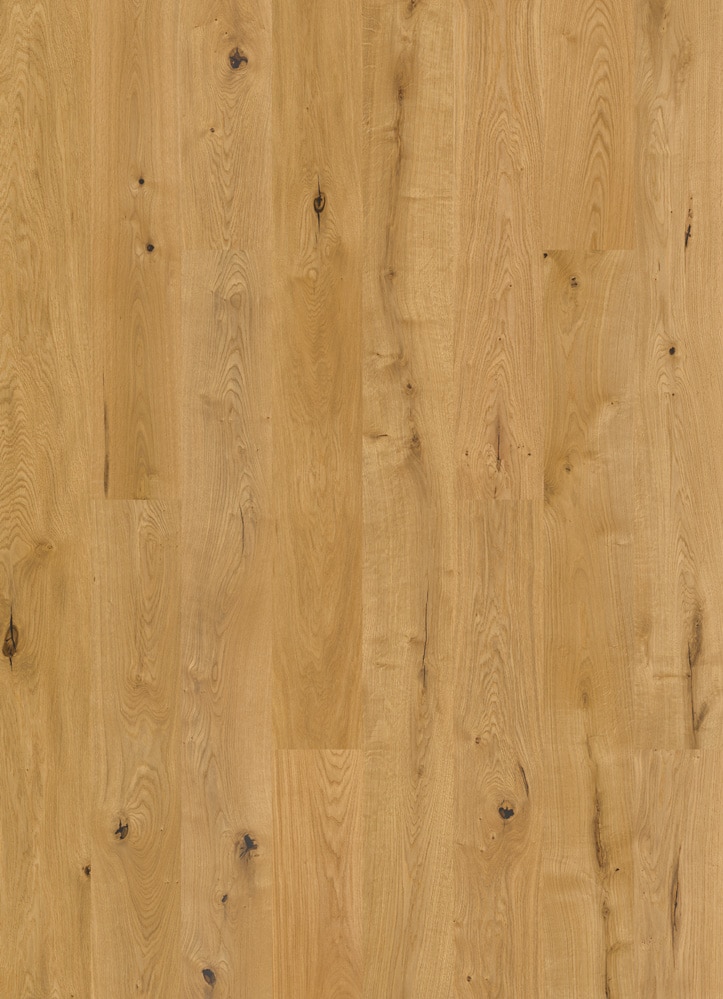 Die feine und ruhige Holzmaserung bildet die elegante Grundlage dieses Bodens, während lebhafte Äste und natürliche Risse spannende Kontraste setzen. Das Zusammenspiel von Zurückhaltung und Charakter schafft eine besondere Atmosphäre – authentisch, kraftvoll und ausdrucksstark. Holztypische Farb – und Strukturunterschiede unterstreichen die Natürlichkeit des Materials nd machen jede Diele zu einem Unikaat. Ein Boden mit Seele, der Individualität und Ursprünglichkeit eindrucksvoll vereint.