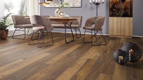 Schwimmend verlegt auf Easy Fit Unterlagsplatten oder Aqua Stopp Parkettunterlagen mit Dampfbremse.